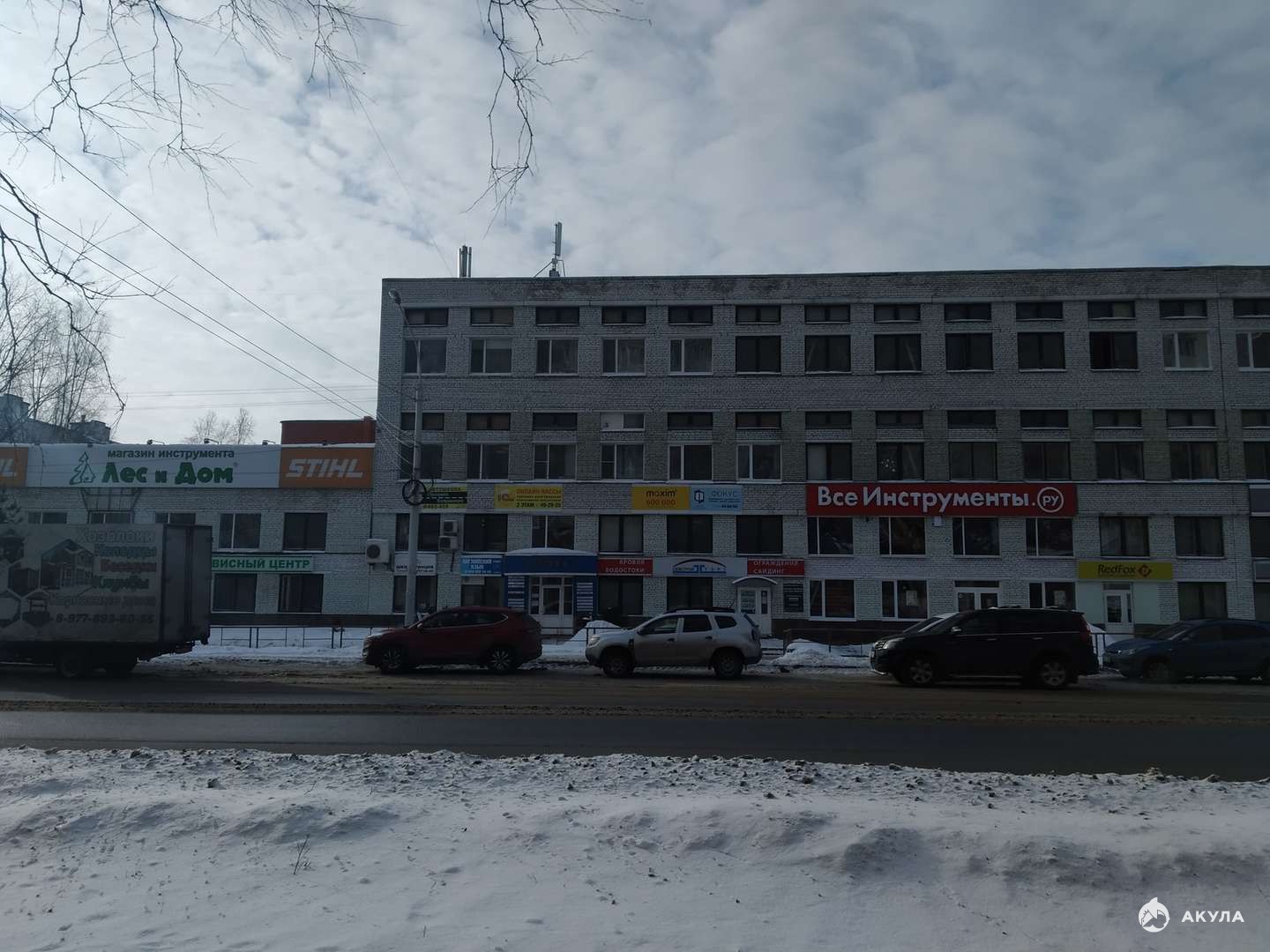 В здании расположены арендаторы: магазины стройматериалов, офисы, автошкола, салоны красоты.