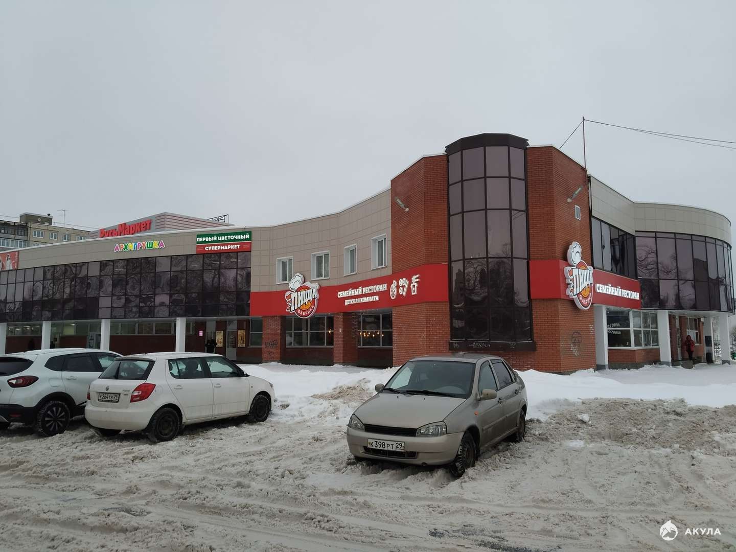 Арендаторы соседних помещений: семейный ресторан "Пицца-фабрика", супермаркеты федеральных сетей "Магнит" и "Магнит-Косметик", пункты выдачи Озон и Wildberries, аптека, цветочный магазин, магазин одежды "Эконом Маркет".