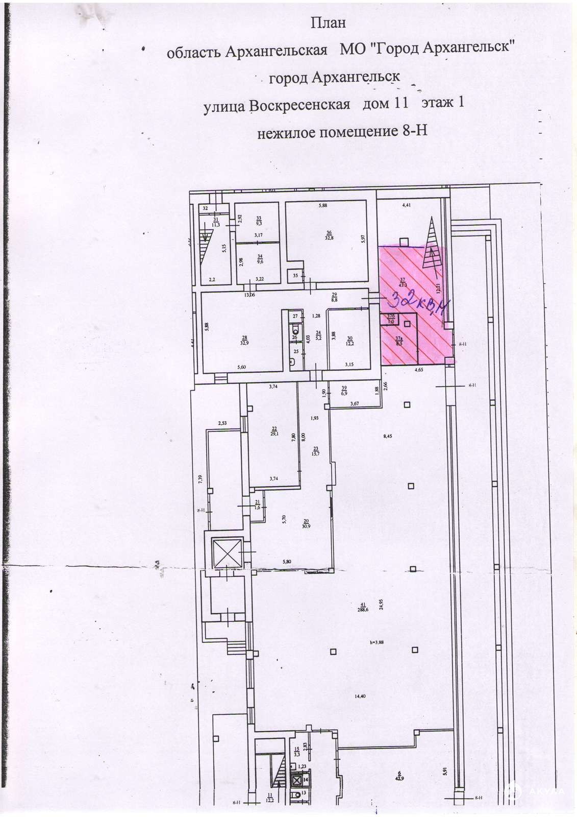 Свободная площадь аренды 32 кв. м . Этаж 1