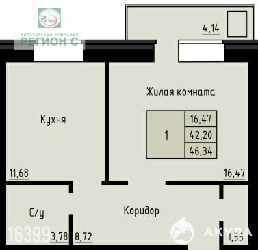 - 16.4 м²