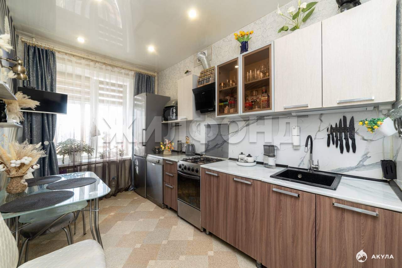 Новым собственникам остаётся мебель, имеющаяся в квартире (встроенная кухня) .